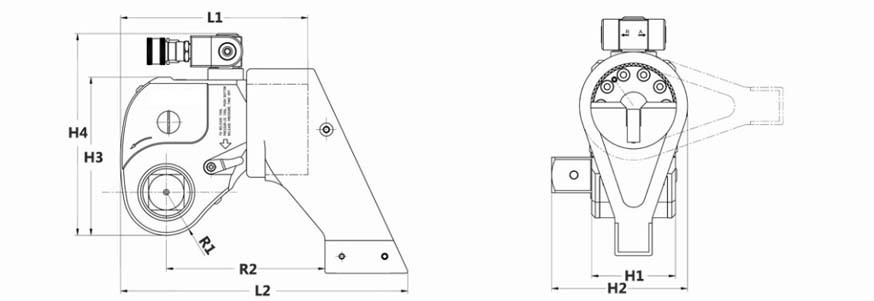 Модель | Крутящий момент Nm | Размер приводного квадрата дюйм | Шестигранник мм | Вес кг | L1 мм | L2 мм | H1 мм | H2 мм | H3 мм | H4 мм | R1 мм | R2 мм |